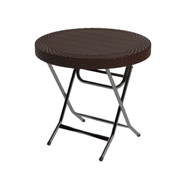 3M Plast Laura Dark Brown Round Rattan 80x75cm Foldable Table with Steel Legs