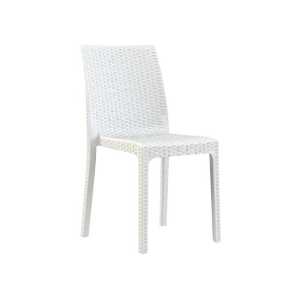 3M Plast Queen 45×55×88cm White Plastic Rattan Chairكرسي بلاستيك أبيض بتصميم راتان 45×55×88 سم – 3M بلاست كوين