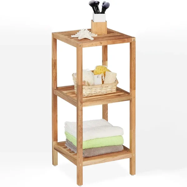 Offers three storage levels, ideal for organizing toiletries, towels, books, or decorative items.