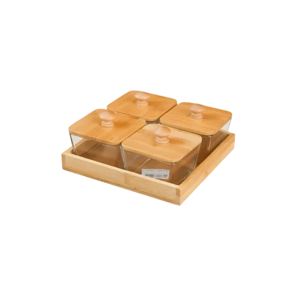 صينية تقديم من الخيزران مع 4 علب زجاجية