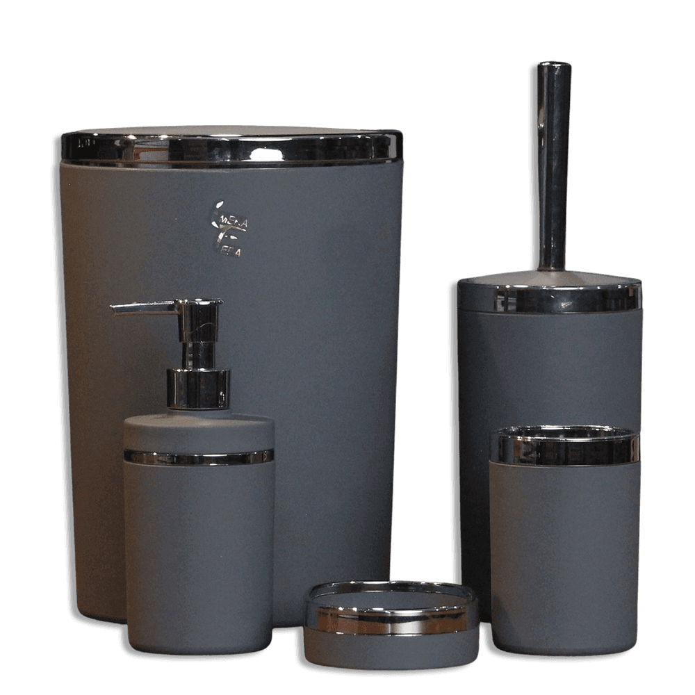 Bathroom Matte Grey & Silver Frame Set of 5pcs