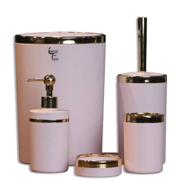 You will get: 1 toothbrush holder, 1 lotion/liquid soap dispenser, 1 soap dish, 1 bathroom trash can and 1 toilet brush with holder