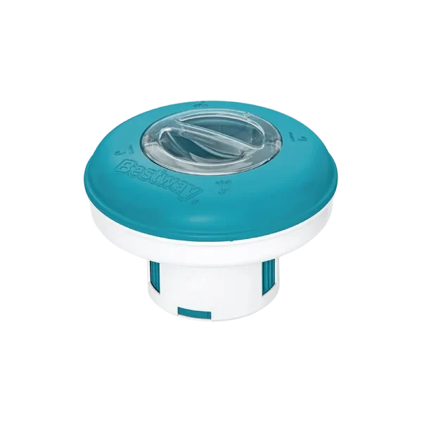 The dispenser’s design ensures a continuous release of chemicals into the pool water, helping to maintain the cleanliness and balance of the water over time.