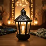 Black 33cm Hanging Ramadan Lantern with LED Candle