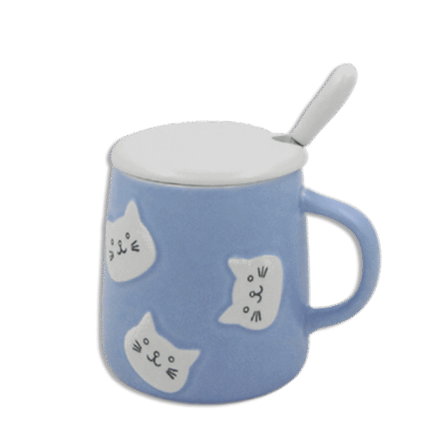 Blue Cats Mug with Lid & Spoon