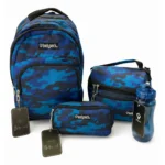 This set includes a spacious backpack, a matching lunch bag, a pencil case, and a water bottle, providing a coordinated and practical solution for everyday needs.