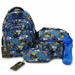 This set includes a spacious backpack, a matching lunch bag, a pencil case, and a water bottle, providing a coordinated and practical solution for everyday needs.