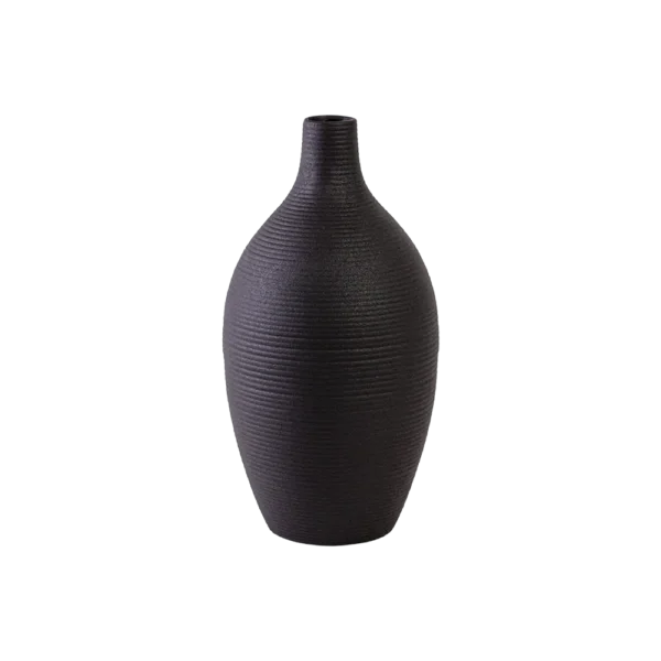 Ceramic 24cm Round & Ribbed Design Black Vase