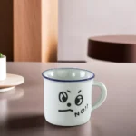 Ceramic Angry Face Design Blue Small Coffee Cup