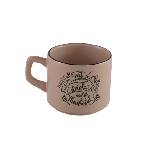 Ceramic Beige Small Mug with Handle & Black Rim