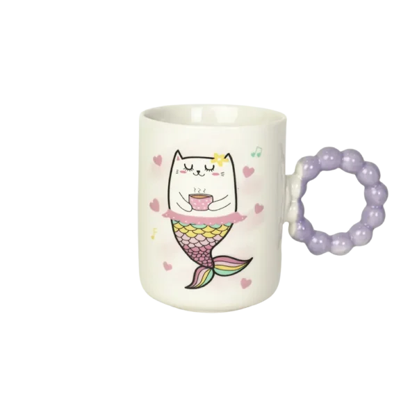Ceramic Cat Design Mug with Purple Bubble Design Handle
