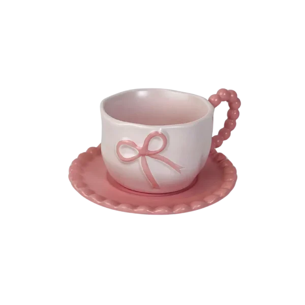 Ceramic Coquette Bow Design Pink Mug with Saucer