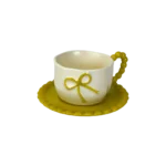 Both the cup and saucer have a naturally uneven, hand-crafted silhouette that adds personality and artisanal charm.