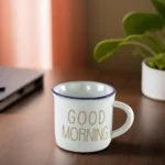Ceramic Good Morning Design Blue Small Coffee Cup