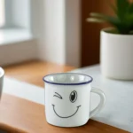 Ceramic Happy Face Design Blue Small Coffee Cup