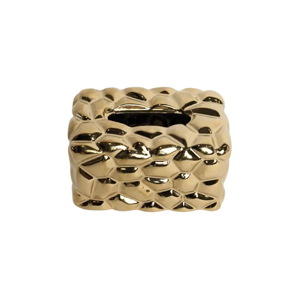 Ceramic Hex Pattern Design Gold Tissue Box