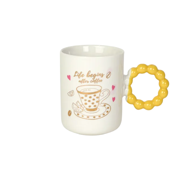 Ceramic White Mug with Yellow Bubble Design Handle