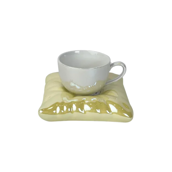 Both the cup and saucer feature a smooth, high-shine glaze that enhances durability and aesthetics.