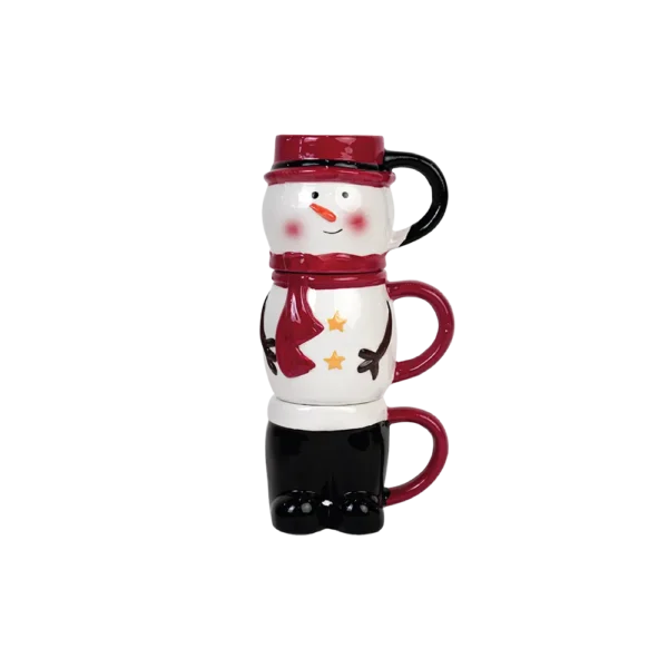 The three mugs fit perfectly on top of each other to form a cheerful Snowman, making it both a decorative and functional set.