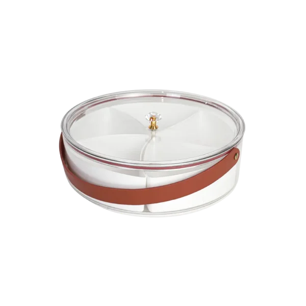 Circular Compartment Plastic Food Storage Caddy with Handle & Lid