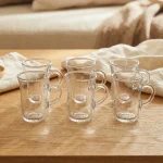 Clear Glass 6pcs Tea Cups Set with Handleطقم كاسات شاي زجاج شفاف بمقبض – 6 قطع