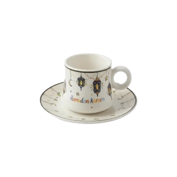 Colored Ramadan Kareem 6pcs Ceramic Coffee Cup & Saucer Set