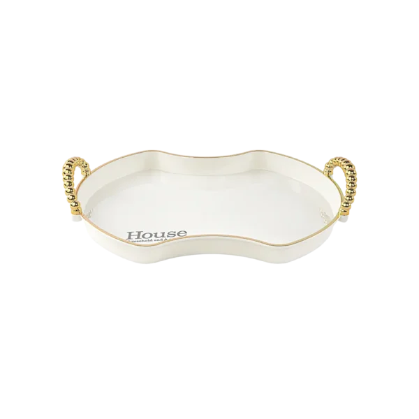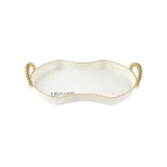 Curvy Shaped 3 Pcs White with Gold Frame Trays Set