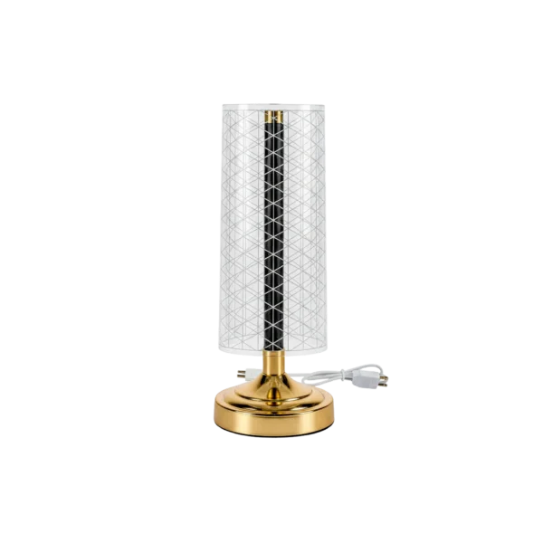 Features a tall cylindrical lampshade with an elegant geometric line pattern, offering a clean, contemporary aesthetic that enhances any décor style.