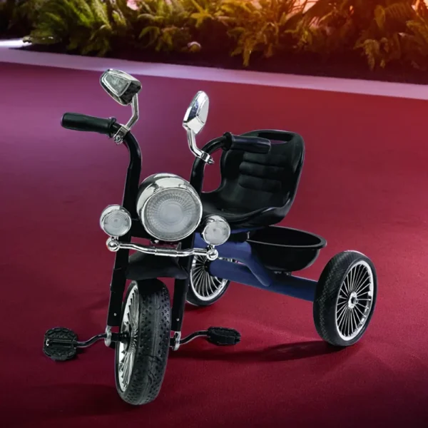 Dark Blue & Black 3-Wheels Tricycle with Light & Basket