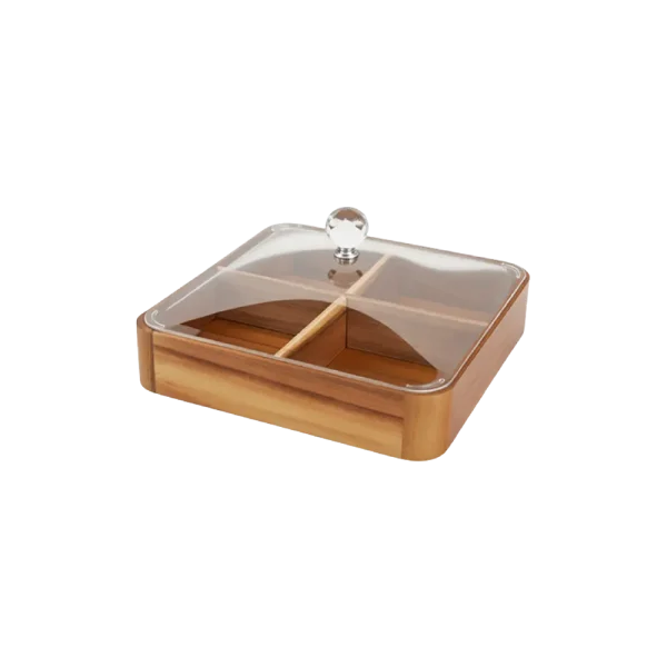 Dark Wooden Organizer with Plexi Lid 4 Compartmentsعلبة تنظيم خشبية داكنة مع غطاء بلاكسي 4 أقسام