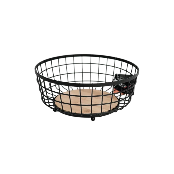 Dosthoff Black Iron Grid Fruit Basket with Bamboo Base