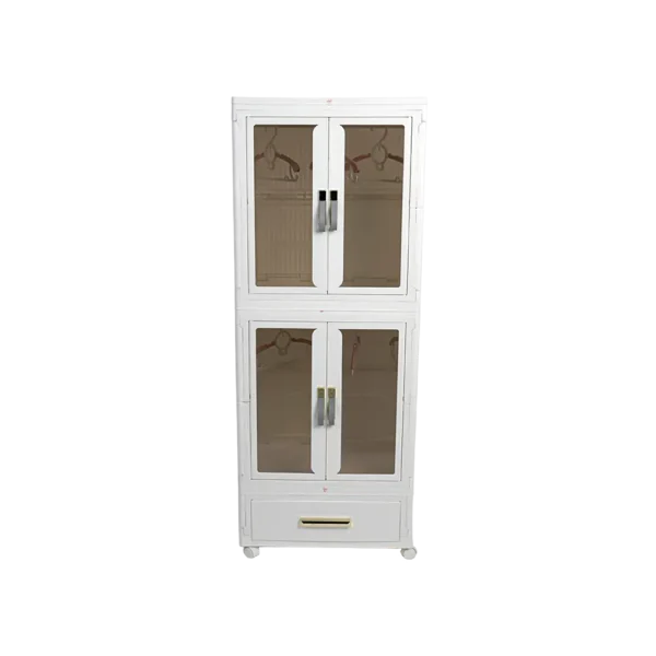 Additional enclosed drawer at the base for storing folded clothes, shoes, or miscellaneous items.