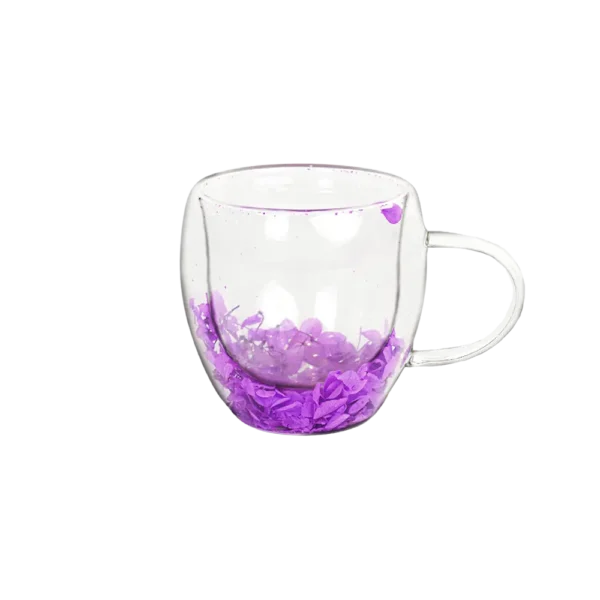 Double Glass Purple Flower Design Mug