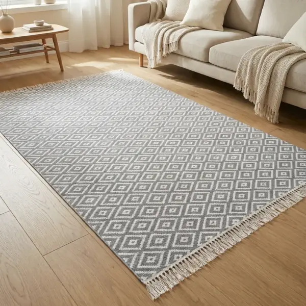 Dual-Side 160x250cm Geometric Style Grey & White Carpet