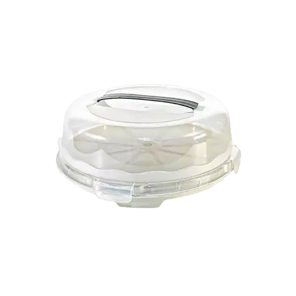 The transparent lid keeps cakes visible while protecting them from dust and external contact.