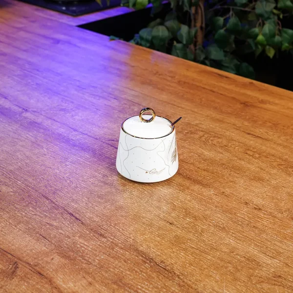 Elegant Line Art Porcelain 350ml Sugar Bowl with Spoonسكرية بورسلان 350 مل بتصميم الخطوط الأنيقة مع ملعقة