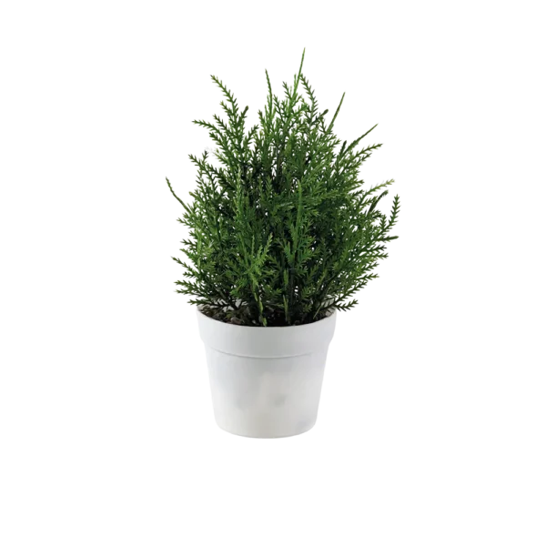 Eva Cedar Green Plan with White Vase