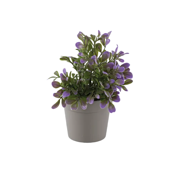 Eva Green & Purple Plant with Beige Vase