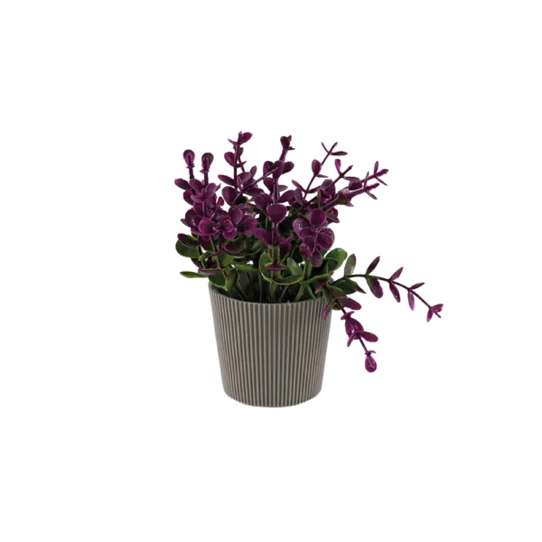 Eva Magenta Plant with Ribbed Design Beige Vase