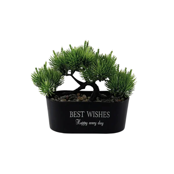 Eva Small Green Tree with Rectangular Black Vase