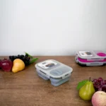 Stainless steel interior with two divided sections keeps different foods separate and fresh.