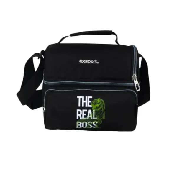 Exsport 2526102 The Real Boss Design 2 Zippers Black Lunch Bag