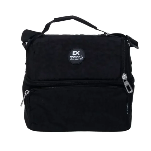 Exsport 2526605 Black 2 Zippers Lunch Bag with Front Pocket