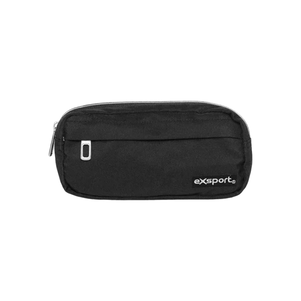 Exsport Plain Black 3-Zippers Pencil Case