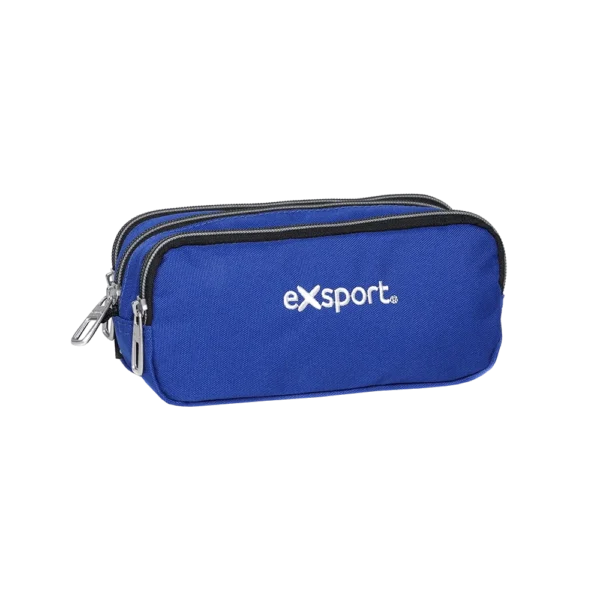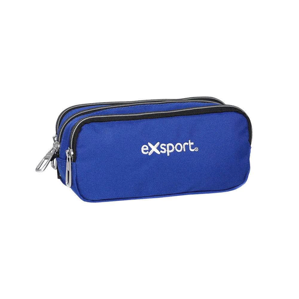 Exsport Plain Blue Triple Zipper Wide Pencil Case