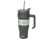 Easy-grip side handle for comfortable carrying or desk-side sipping.