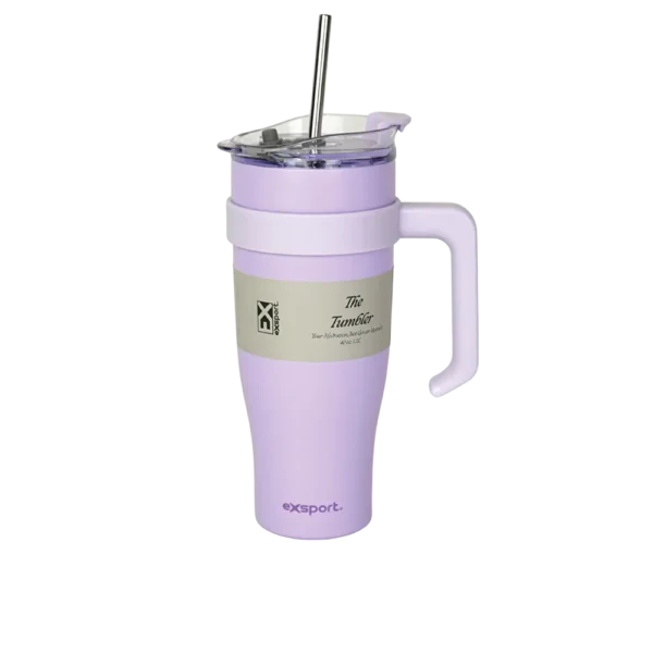 Exsport Stainless 1200ml Purple Mug with Straw