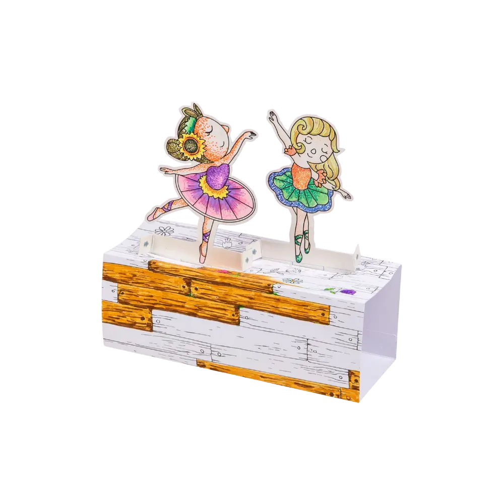 Contents: 20 Connector Pens + 2 Coloring in Ballerinas + 1 Coloring in Theatre Stage + 1 Music Box