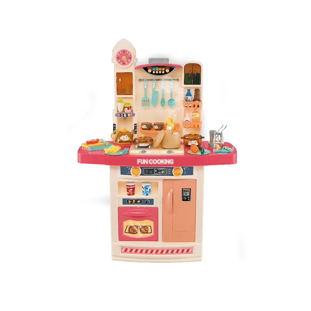 Set also has battery operated light, sound and steam functions on the hob of the kitchen, creating realistic sounds and lights that your child will love.