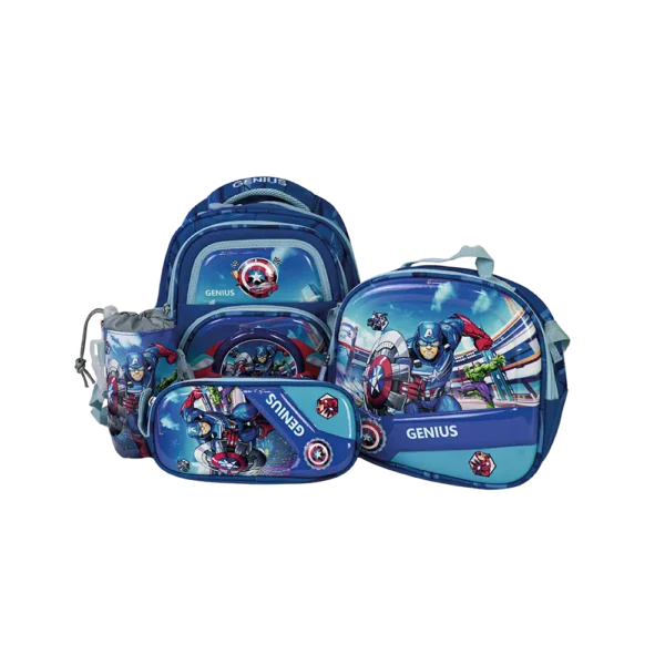 Genius 12in Captain America Design 2 Zippers Blue Kids Backpack Set